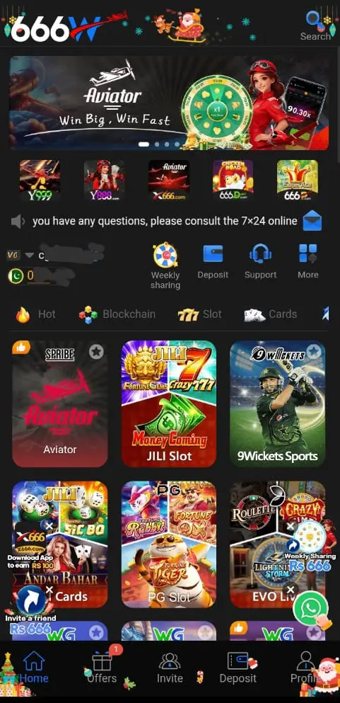 666W allows you to earn by inviting others. When someone joins by using your referral code and starts playing, you receive a commission.