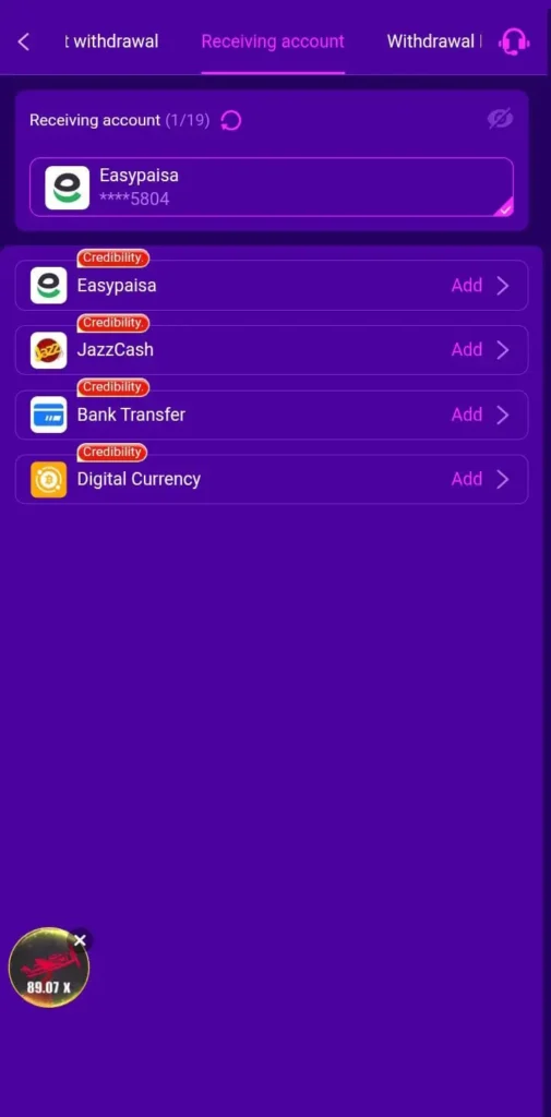 Open the ‘Withdrawal’ section, type the amount you want to withdraw, and select the method of your choice: JazzCash, Easypaisa, or Local Bank. Most transactions are processed within 24 hours.