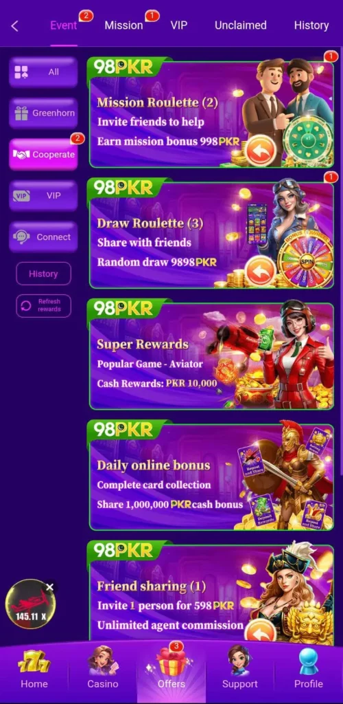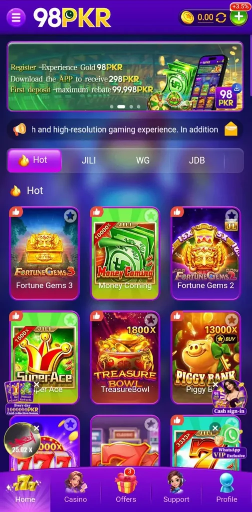 You can enjoy multiple entertainment modes on the 98 PKR Game platform, which uniquely allows you to have fun and earn rewards. Each game mode gives you a new opportunity to test your skills, enjoy new challenges, and increase your wallet simultaneously. This is an ideal combination of entertainment with real income opportunities.