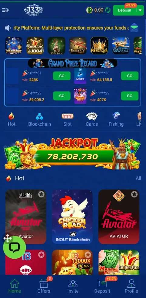 From strategy-based card games to pure-luck slots, from sports betting to fishing games, the J33 app offers a variety of games.
