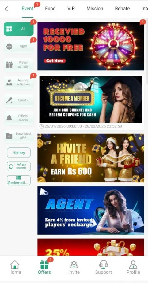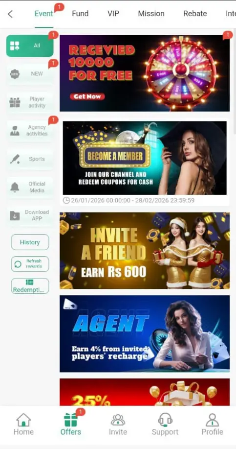 Playing Games Smartly: The first and most direct way to earn is gameplay. You can play games like Teen Patti, slots, and fish shooting to get rewards.